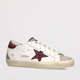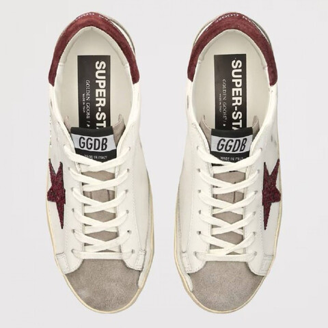 Golden Goose Super Star Белая кожа Бордовая звезда Бордовая пятка