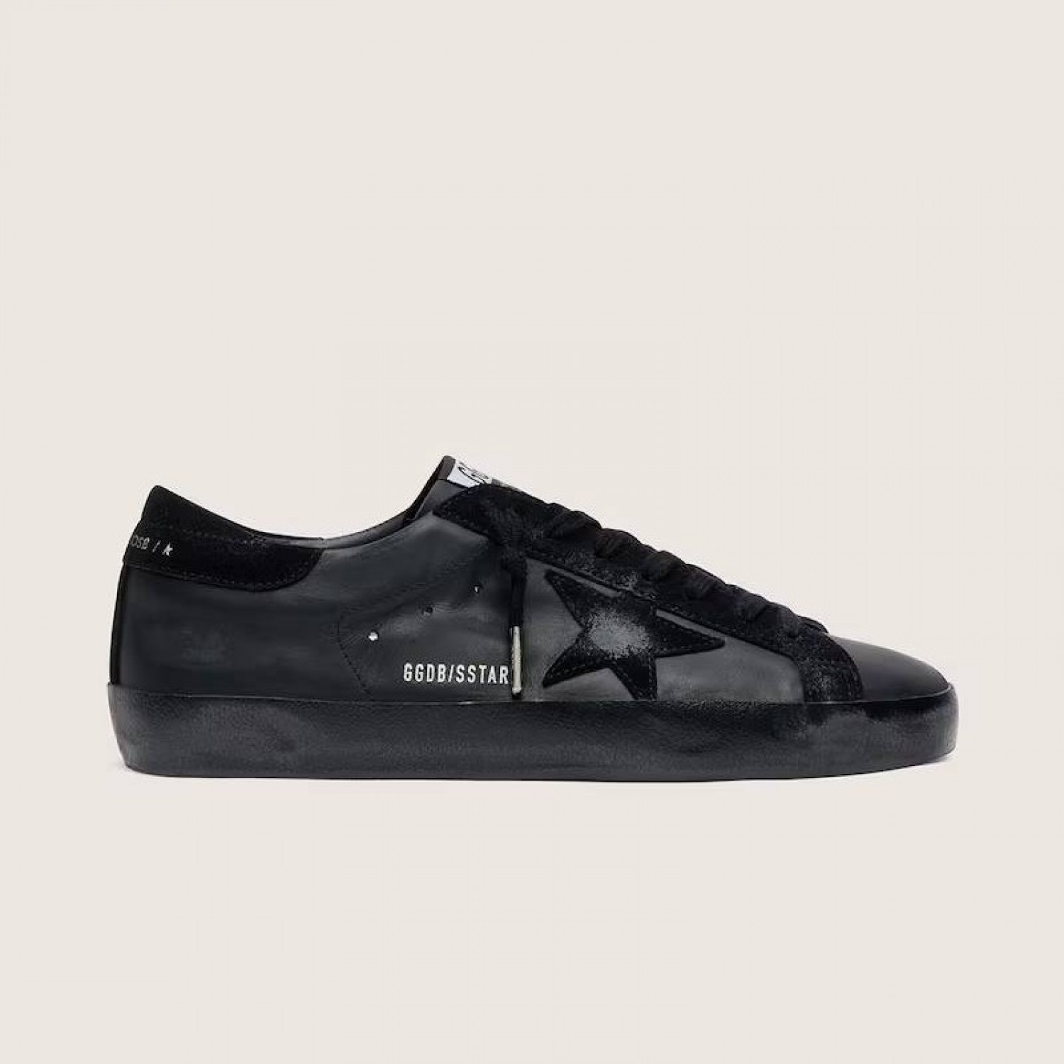 Golden Goose Super Star. Мужские. Черные. Черная кожа. Черная подошва – абсолютная классика в монохроме.
