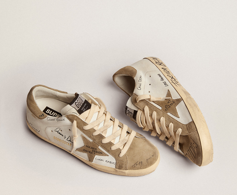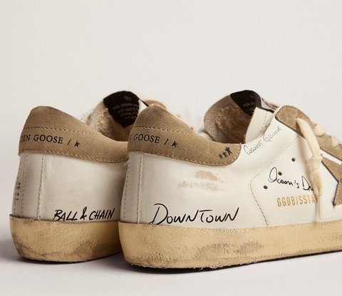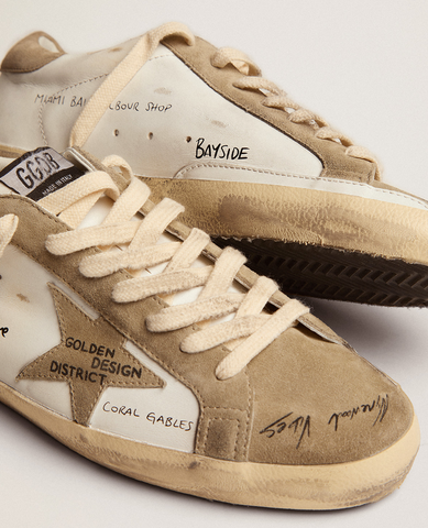 Вечная икона, которая постоянно развивается. В Golden мы любим брать нашу классику и постоянно переделывать ее, всегда под новым углом. Эта модель из белой кожи украшена голубовато-серыми замшевыми вставками, включая звезду, язычок на носке и пятке, а также дизайном по всей поверхности с контрастными черными буквами, вдохновленными Майами и его культовыми достопримечательностями. А кружева кремового цвета добавляют стильный завершающий штрих.