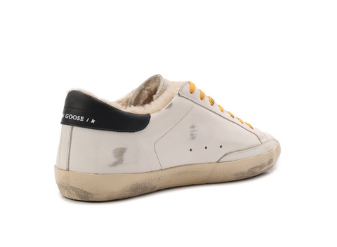 Эта версия знаковых кедов Superstar, представленная в весенне-летней коллекции, создана для прогулок в прохладную погоду. Для изготовления модели использовали гладкую мягкую кожу, для внутренней отделки – стриженую овчину, хорошо сохраняющую тепло. Пару декорировали характерными для линии потертостями и крупными аппликациями в виде пятиконечных звезд.