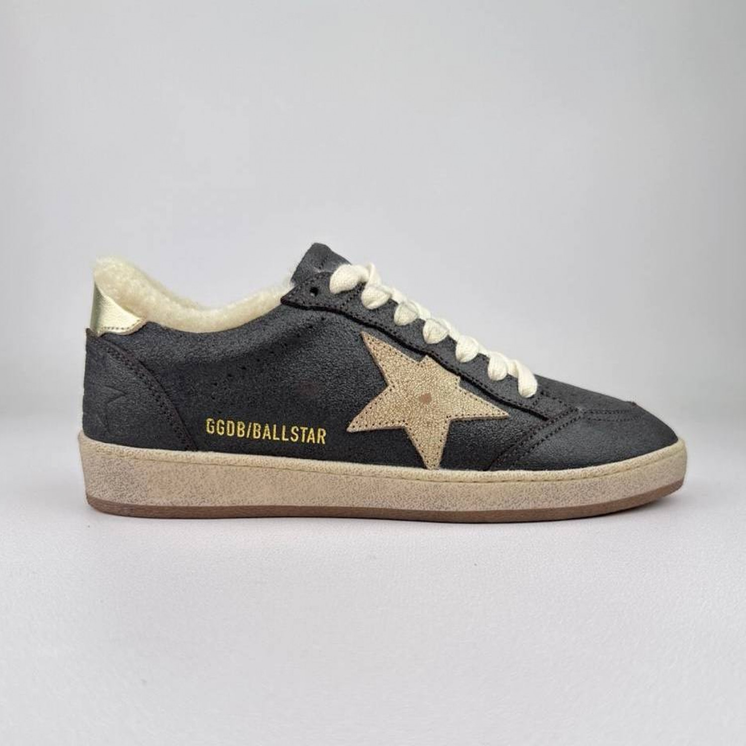 Зимние Golden Goose Ball Star. Коричневая замша. Золотая пятка металлик – тепло и роскошь в каждом шаге.